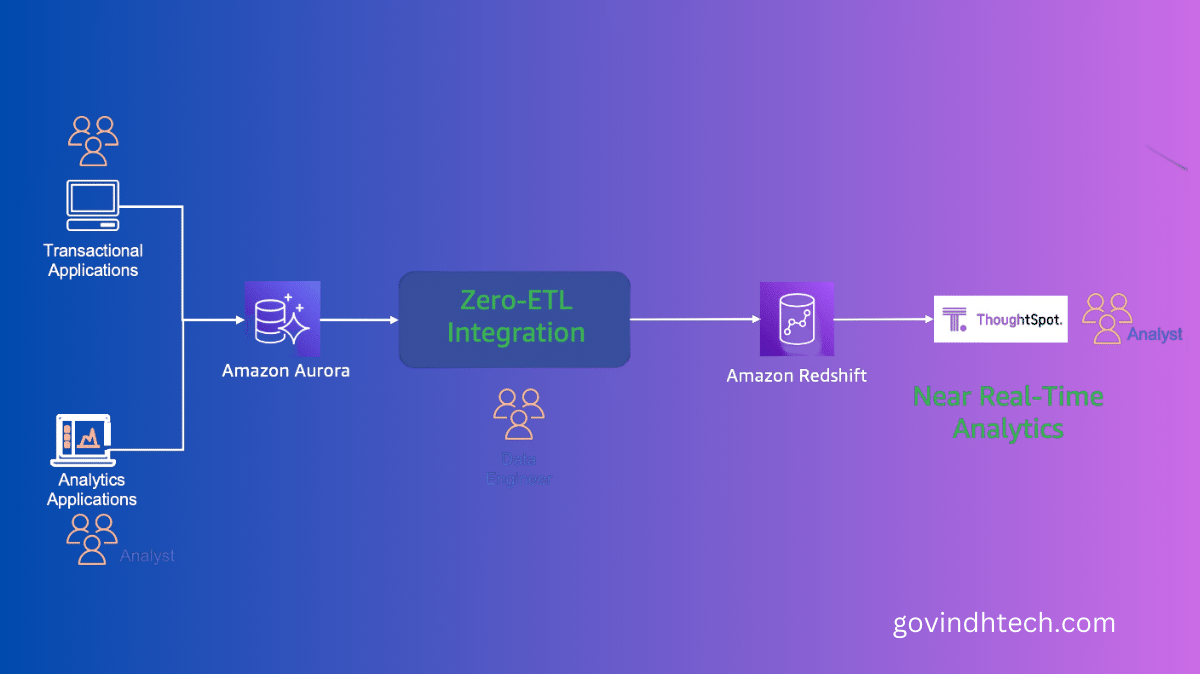This zero-ETL interface between Amazon Aurora and Amazon Redshift enables you to execute near real-time analytics and machine learning (ML) on petabytes of transactional data stored in Amazon Redshift, which opens up new potential for you. As soon as this information is written into Aurora, it will promptly become accessible through Amazon Redshift.
